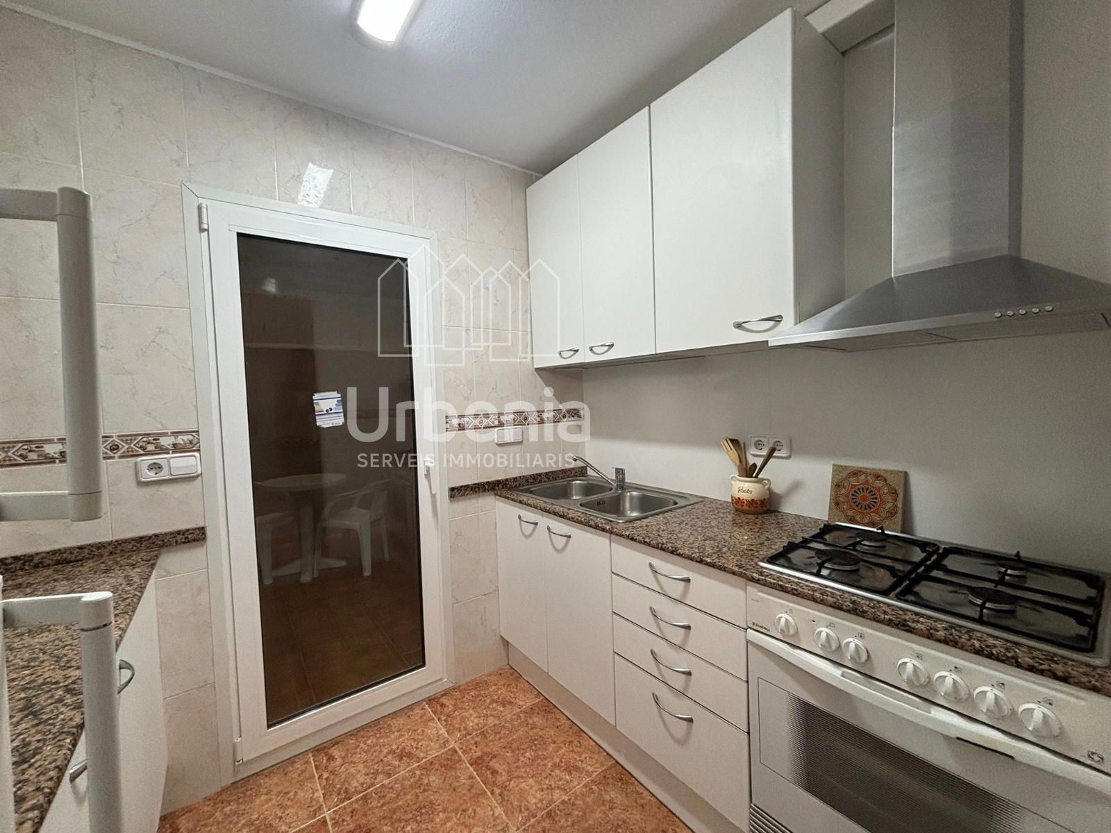Tot seguit, tenim una àmplia cuina de gas equipada, forn i microones. També té un pati interior integrat a la cuina força ampli per poder tenir una sortida.