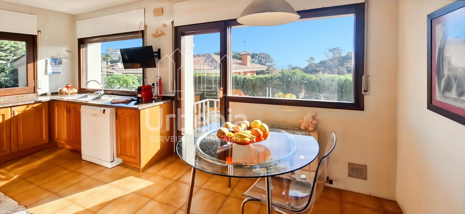 La ubicación es, sin duda, uno de sus grandes atractivos. A tan solo unos minutos de Barcelona y con fácil acceso a la C-32, la vivienda se encuentra en un entorno natural privilegiado, donde la tranquilidad y el silencio son protagonistas.