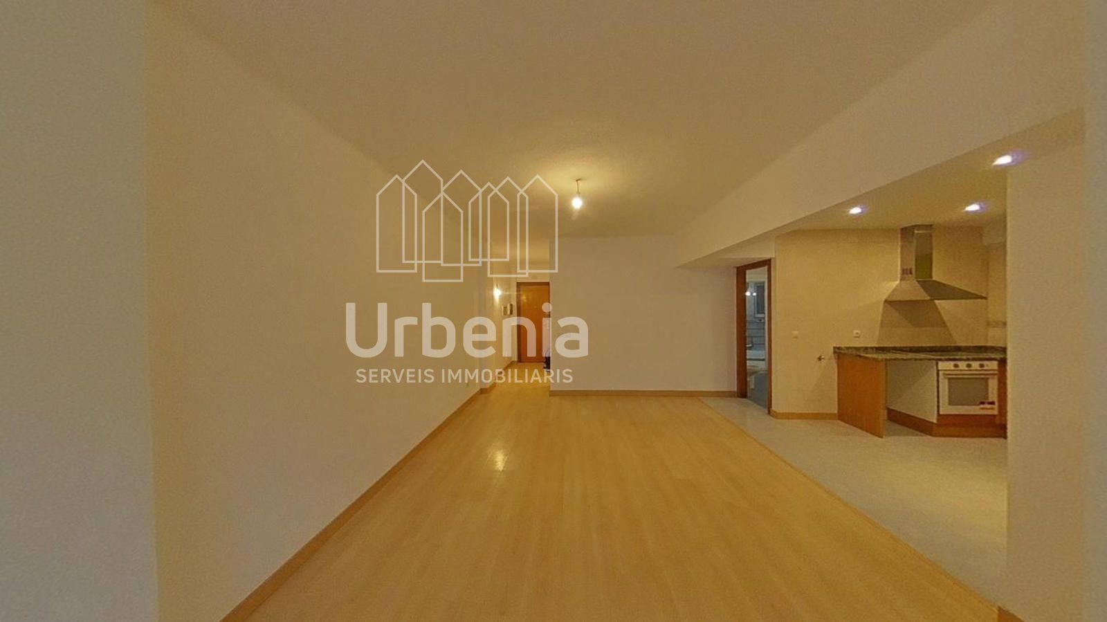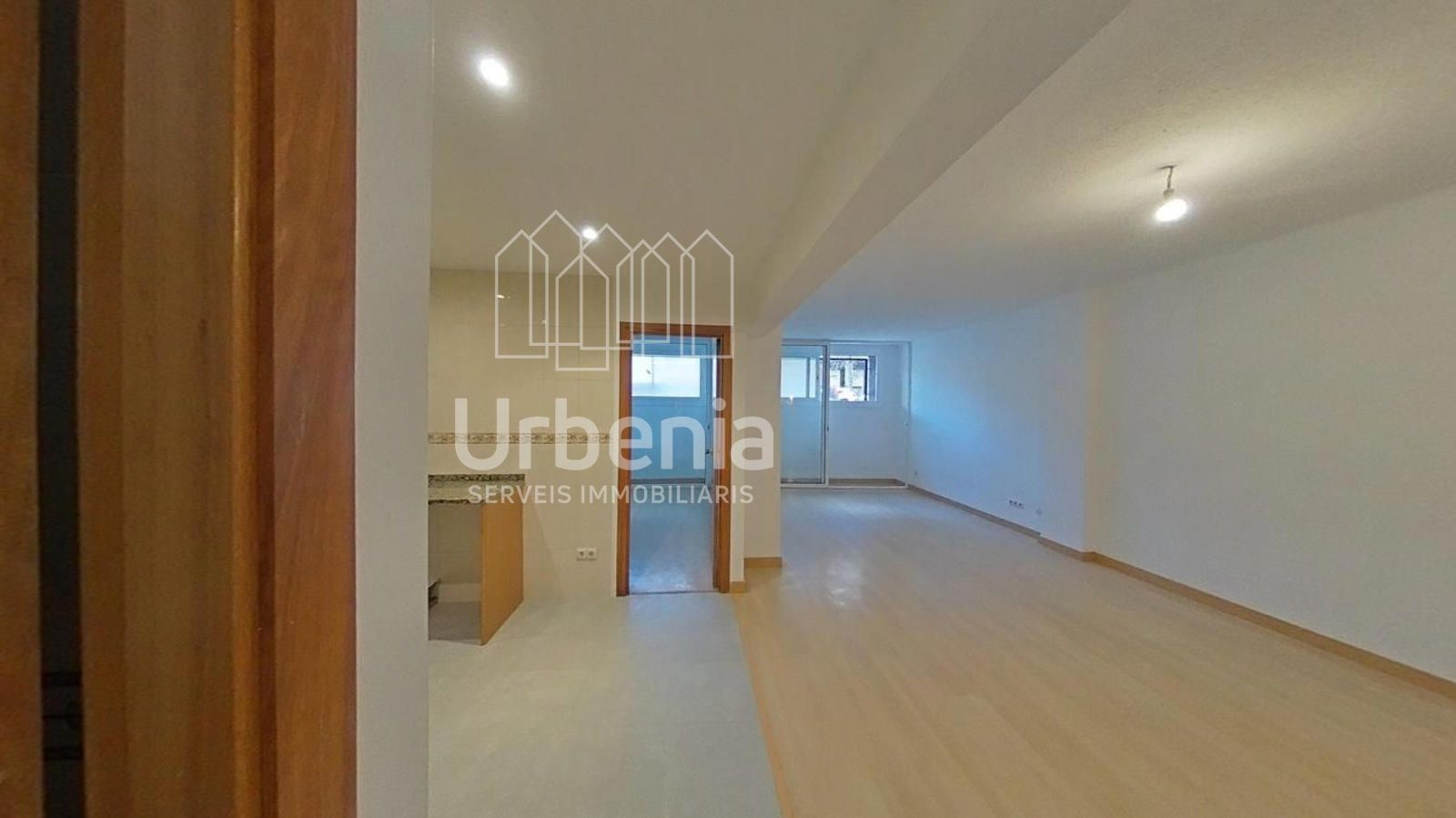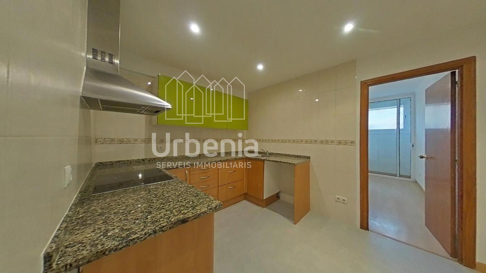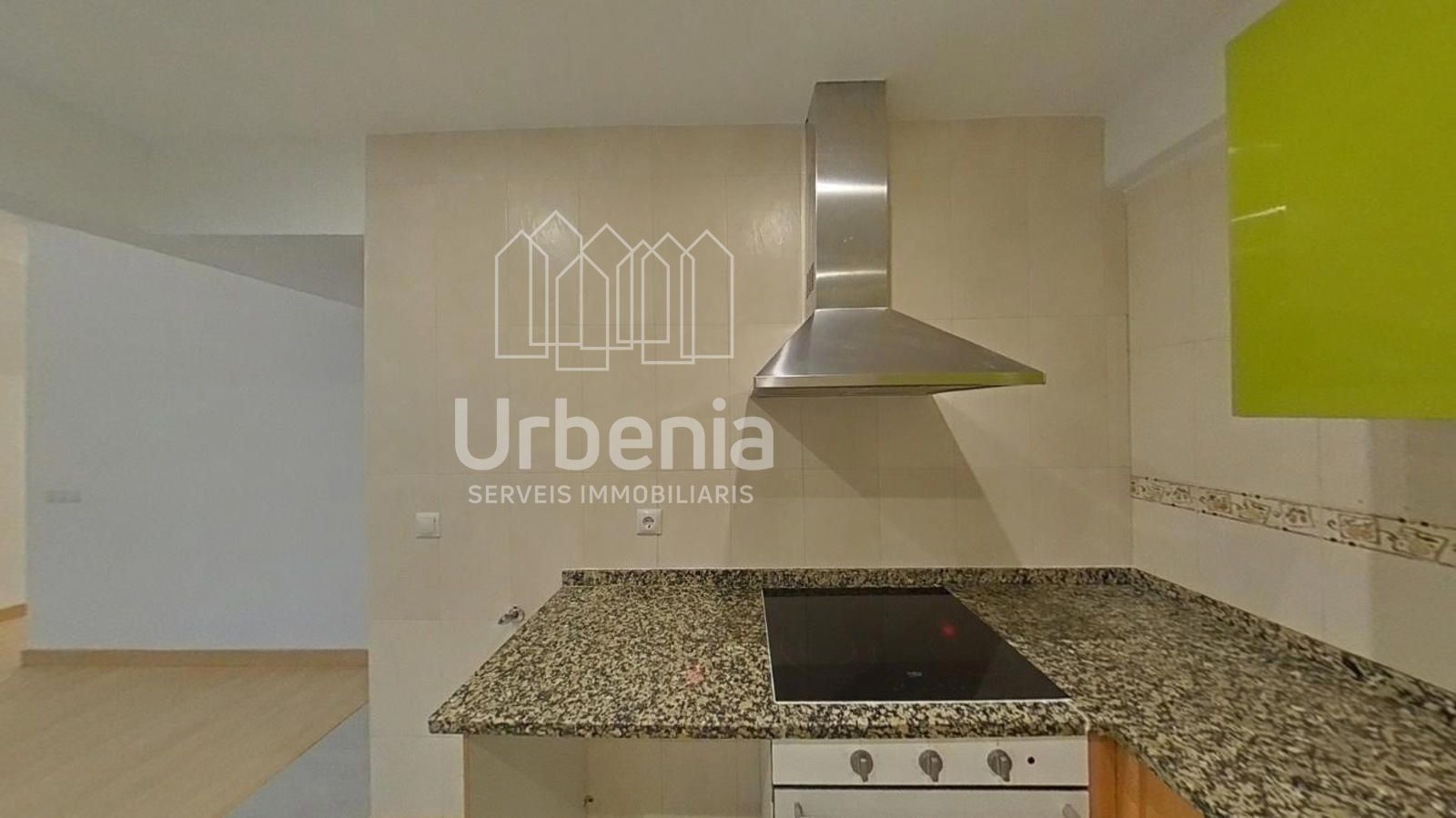 Cuenta con cocina semi-equipada con muebles altos y bajos, vitrocerámica, horno y campana extractora.