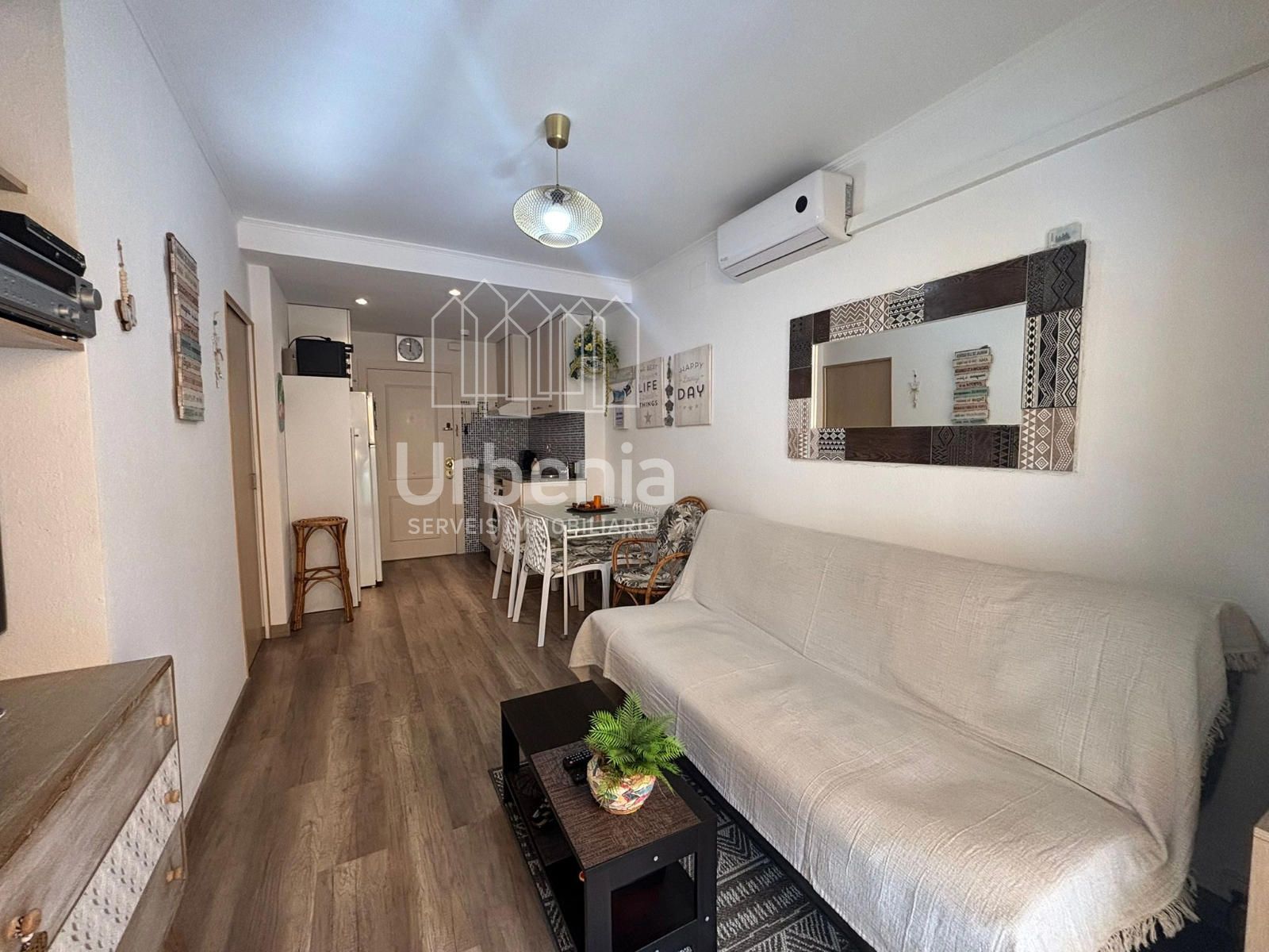 Acogedor y funcional, este apartamento de Calella ofrece un diseño compacto pero bien aprovechado en una primera planta . Cuenta con 30,00 m2, distribuidos en dos habitaciones y un baño. Al entrar encontramos la cocina abierta al comedor, que se complementa con un balcón de 8,00 m2 que da directo a la piscina comunitaria, ideal para despejarse después de un largo día.