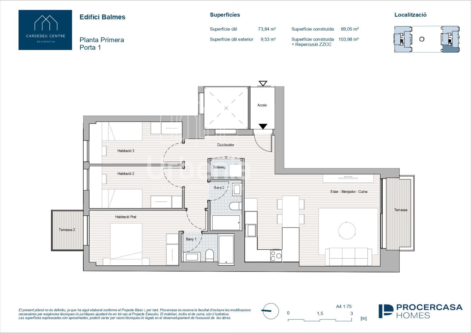 Suprficie útil 73,84 m2