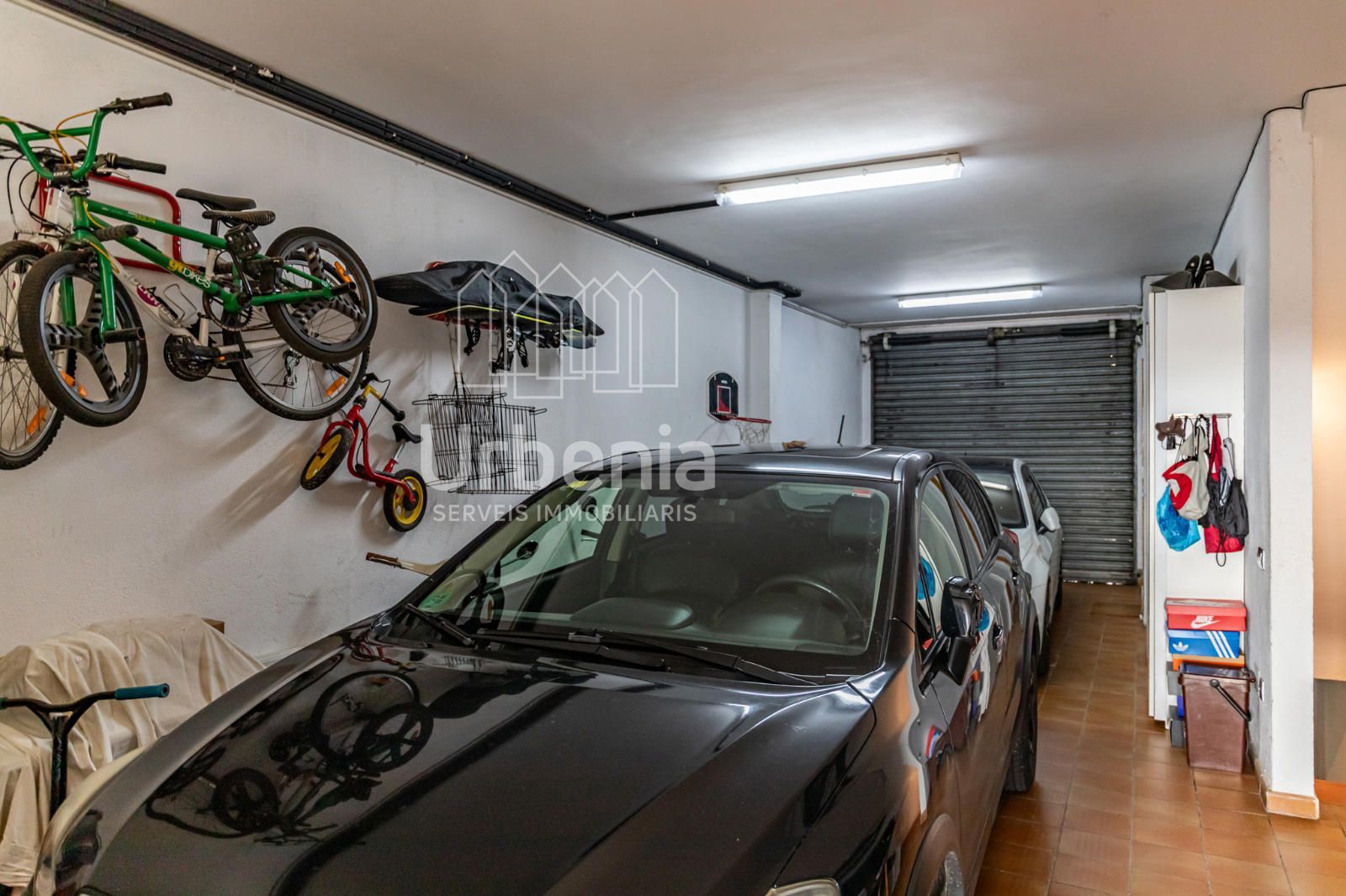 En la planta baja se encuentra el garaje con capacidad para dos coches y motos, un baño completo, el recibidor principal y la escalera de acceso a la zona de vivienda.