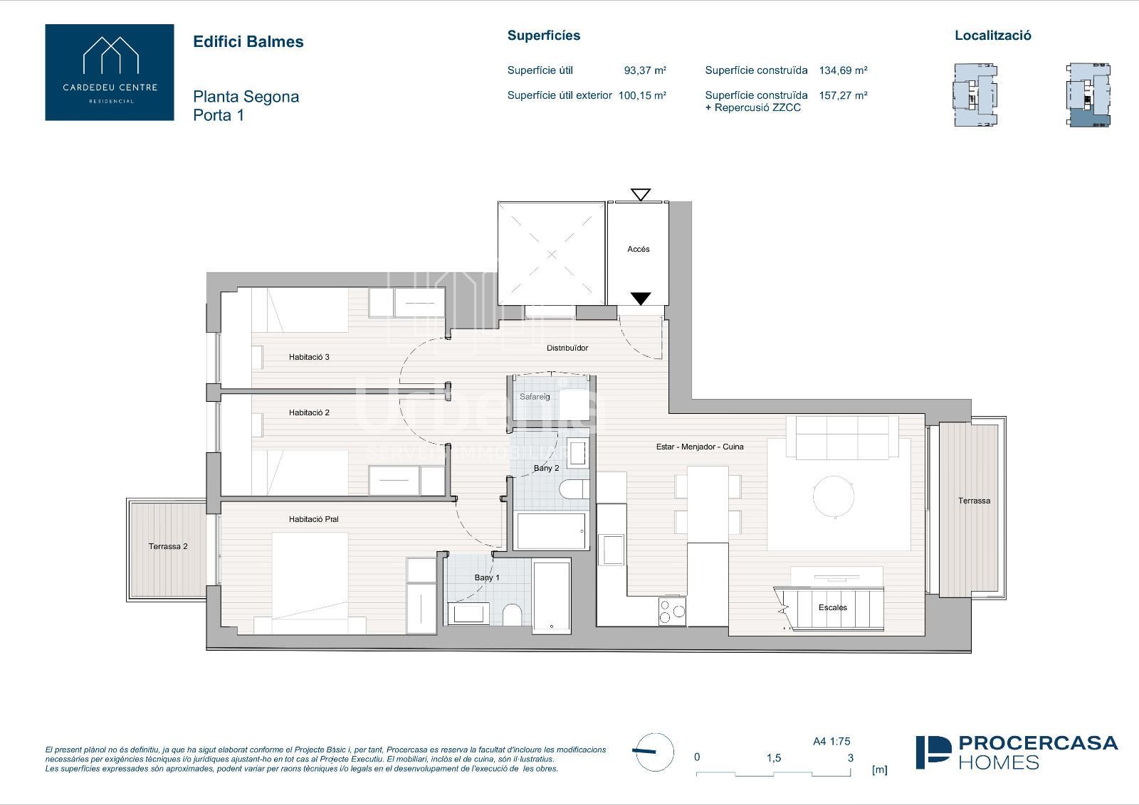 Suprficie útil 93,37 m2