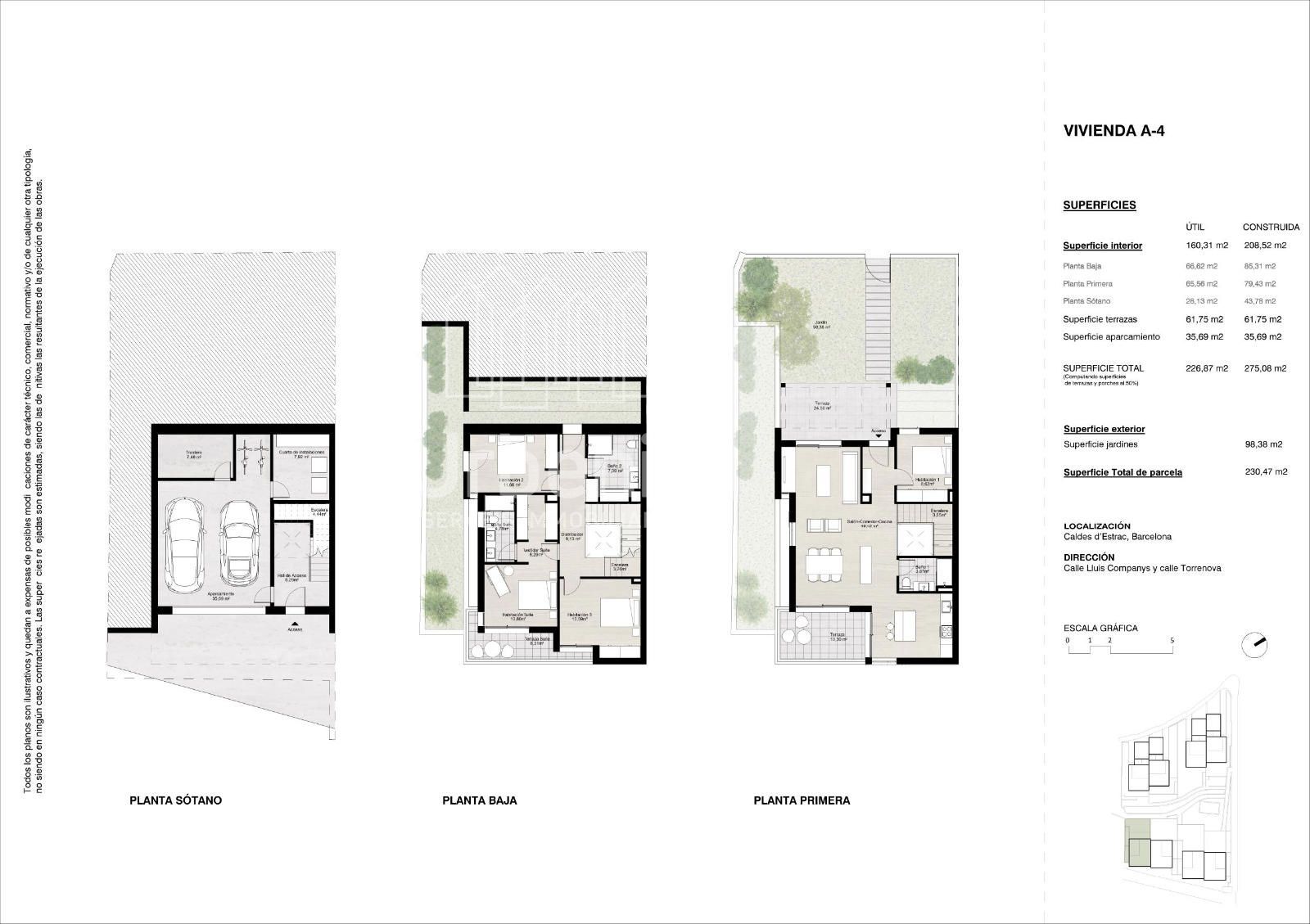 Los interiores se adaptan a distintos estilos de vida, con superficies construidas de entre 250 y 260 m². Las viviendas ofrecen amplios espacios y la posibilidad de elegir entre 4 o 5 dormitorios y 3 o 4 baños, respondiendo a las necesidades de cada familia.