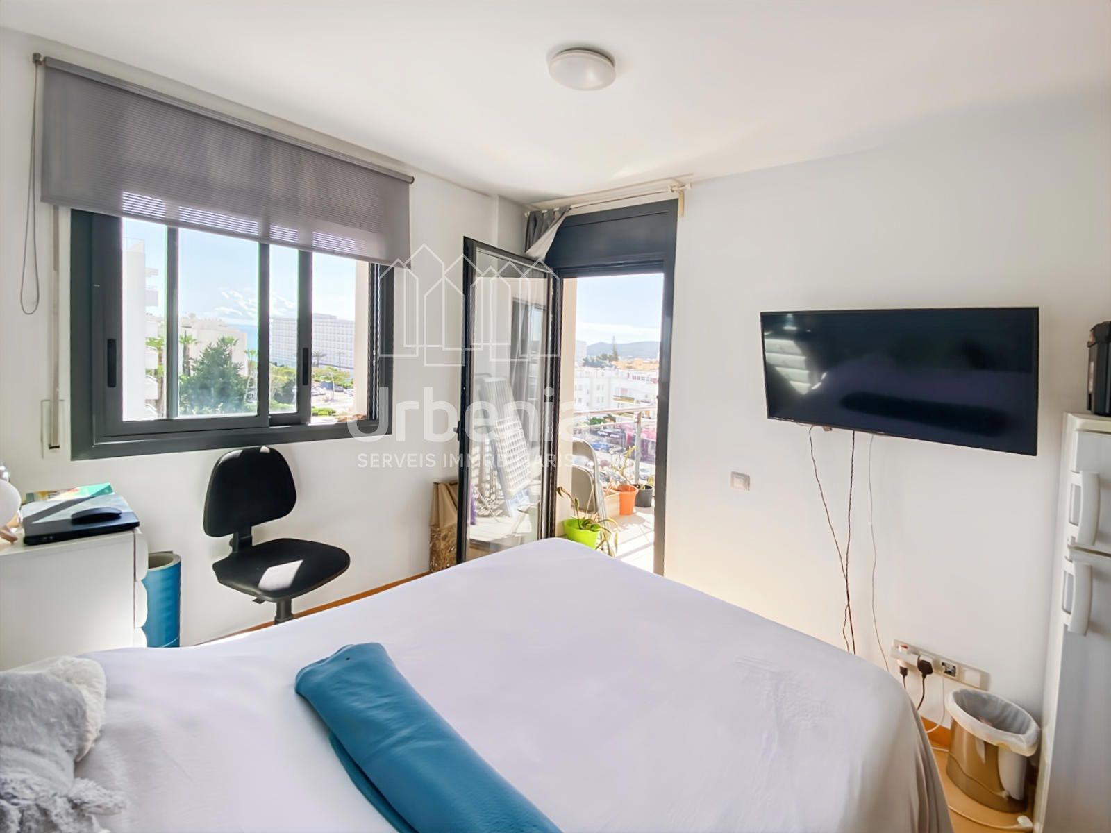 Luminoso apartamento con vistas al mar, situado en una ubicación privilegiada entre Figueretes y Playa d'en Bossa, a pocos minutos de Ibiza ciudad.